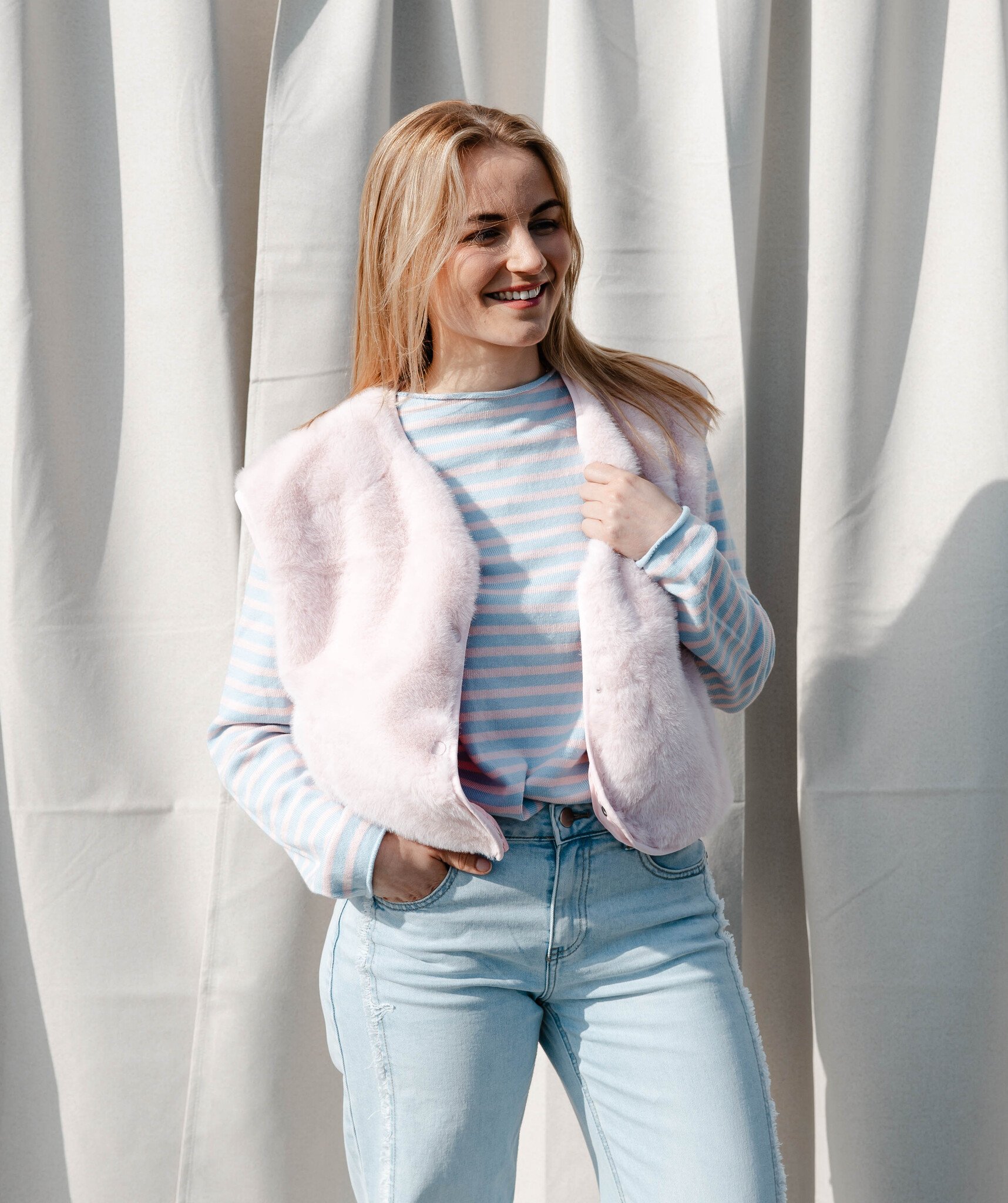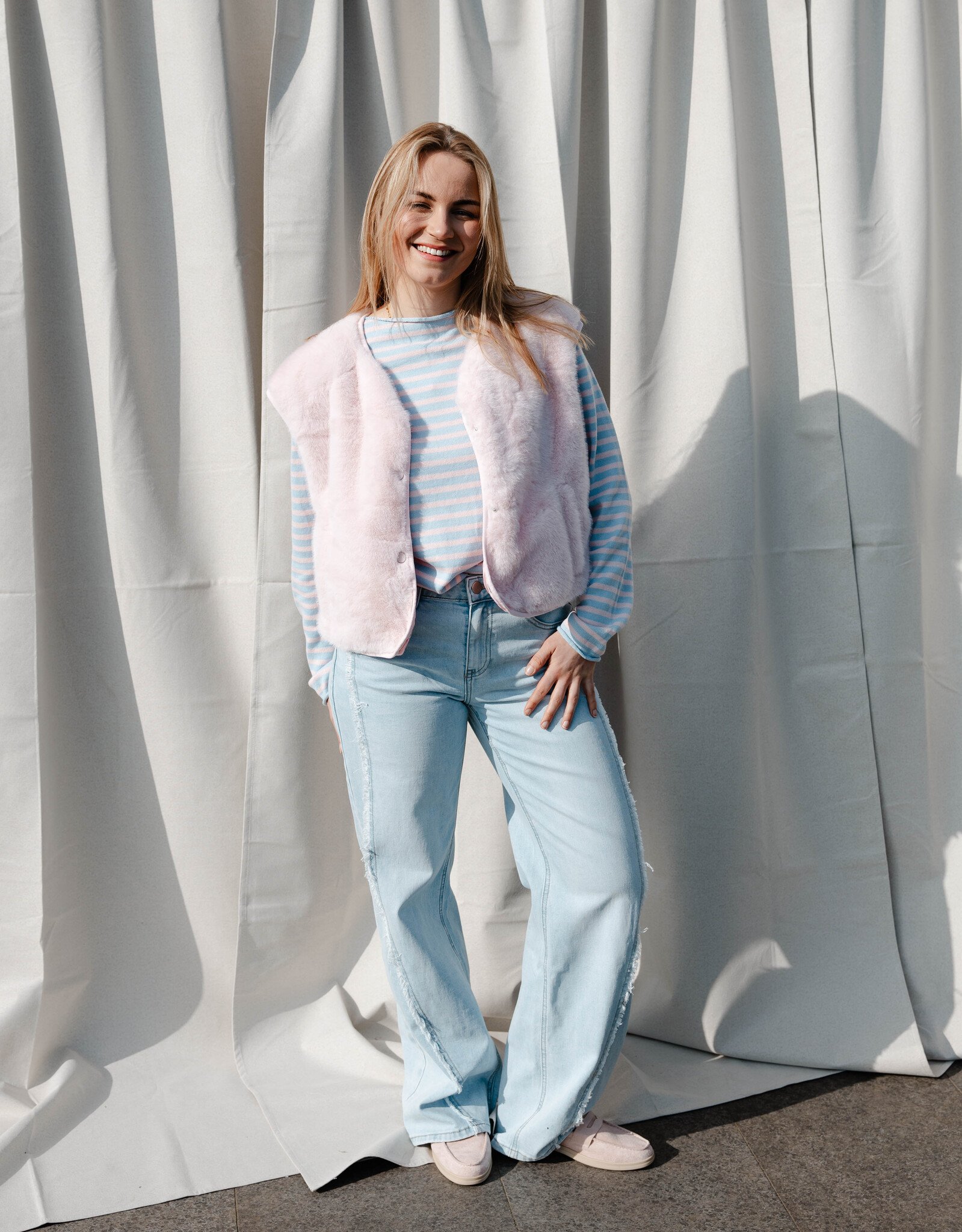 Eleonore longsleeve strepen – Lightblue/Pink