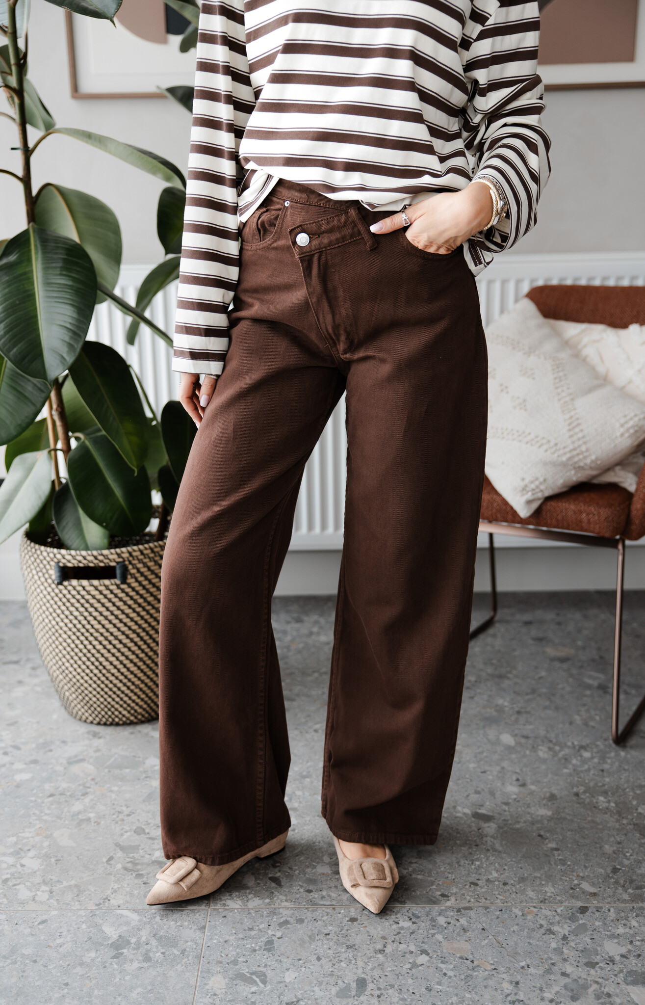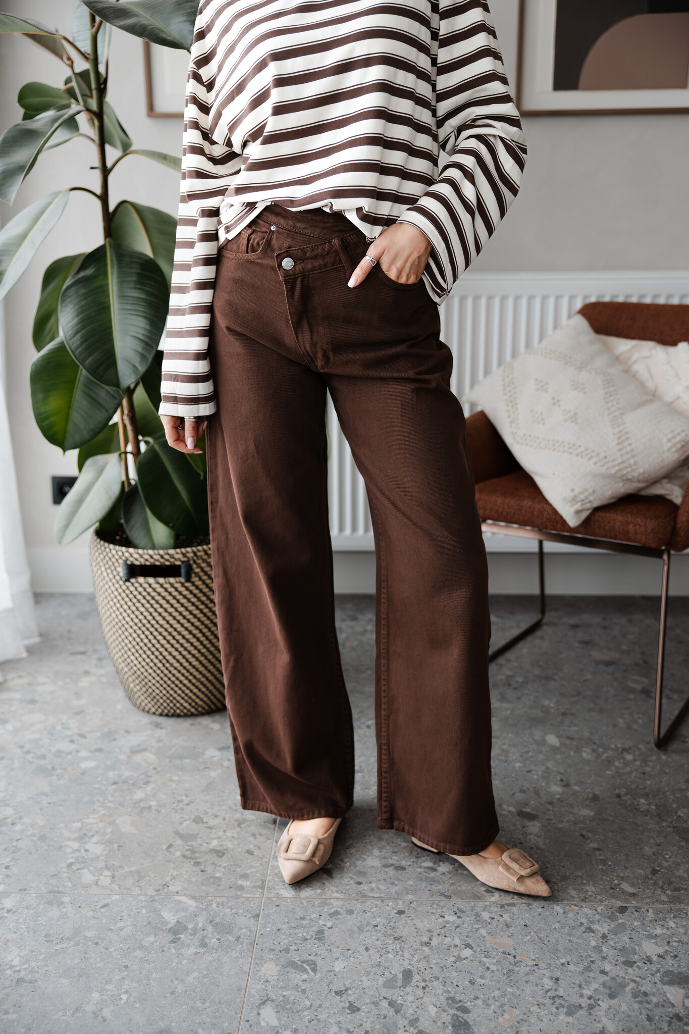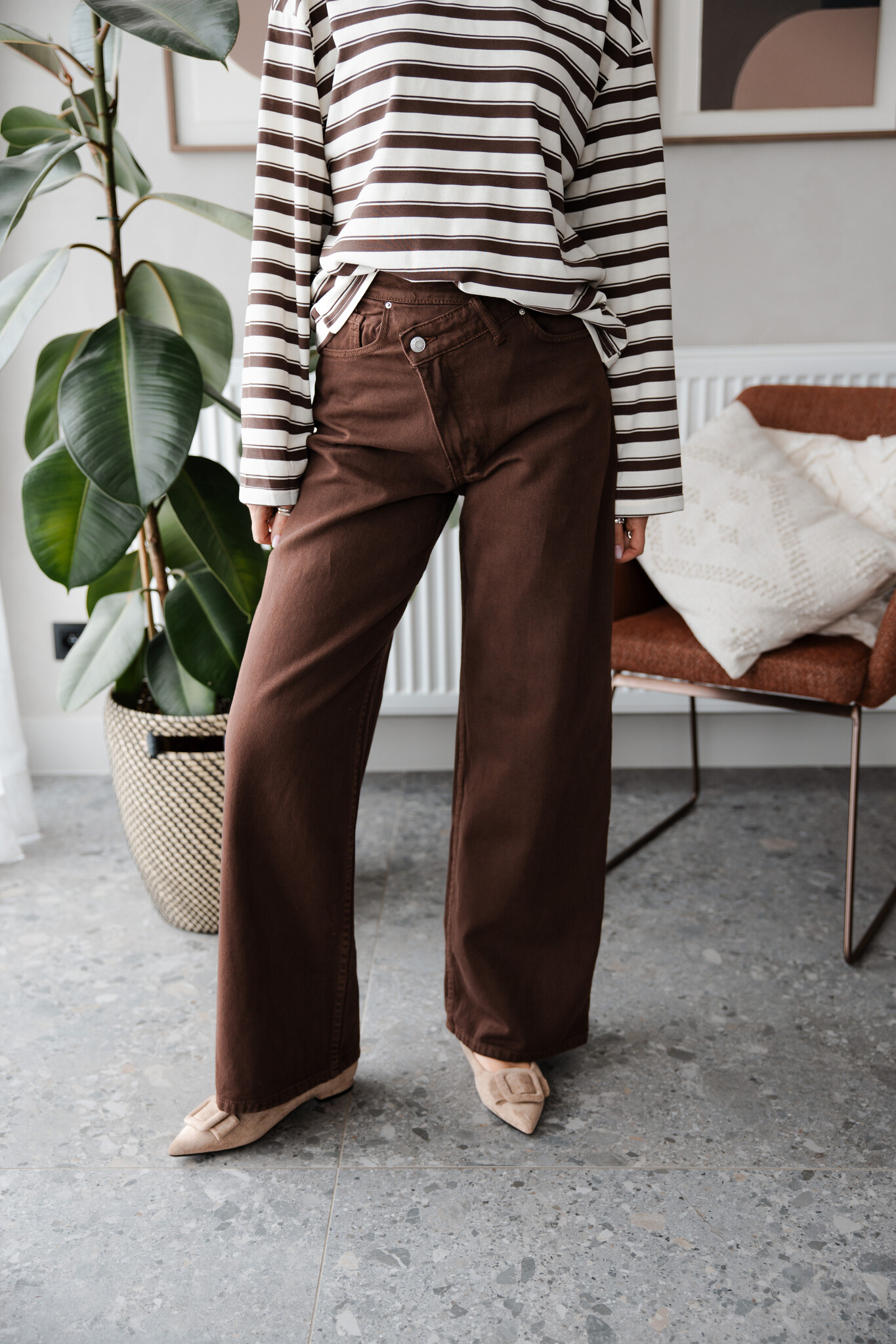 Pre-orderAan verlanglijst toevoegenJeans overslag Emma – Brown €54,95 Incl. btw Niet op voorraad 34 36 38 40 42Size: *3436384042Niet op voorraadInloggen voor wishlist Expected time of deliveryGratis verzending Vanaf €100,-BeschrijvingBroek Kleur : Bruin Maat : Valt op maat Justine meet 1m73 en draagt maat 34