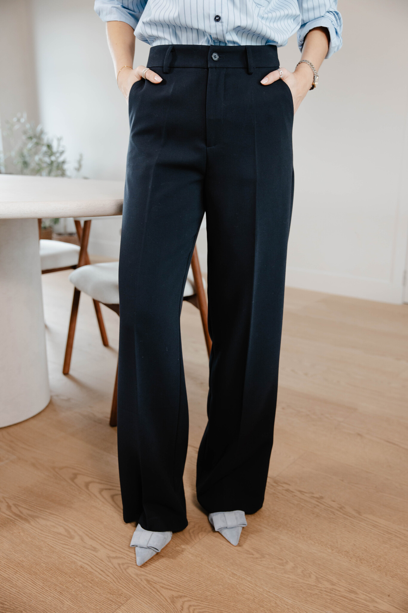 Pre-orderAan verlanglijst toevoegenJenna pants straight – Navy €49,95 Incl. btw Op voorraad 36 38 40 42Size: *36384042Toevoegen aan winkelwagenInloggen voor wishlistDirect betalen Expected time of deliveryGratis verzending Vanaf €150,-BeschrijvingTrouser Kleur : Marine blauw Maat : Valt op maat Justine meet 1m73 en draagt maat 36